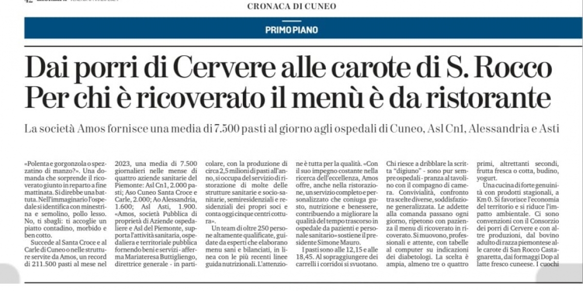 Dai porri di Cervere alle carote di S. Rocco. Per chi è ricoverato il menù è da ristorante